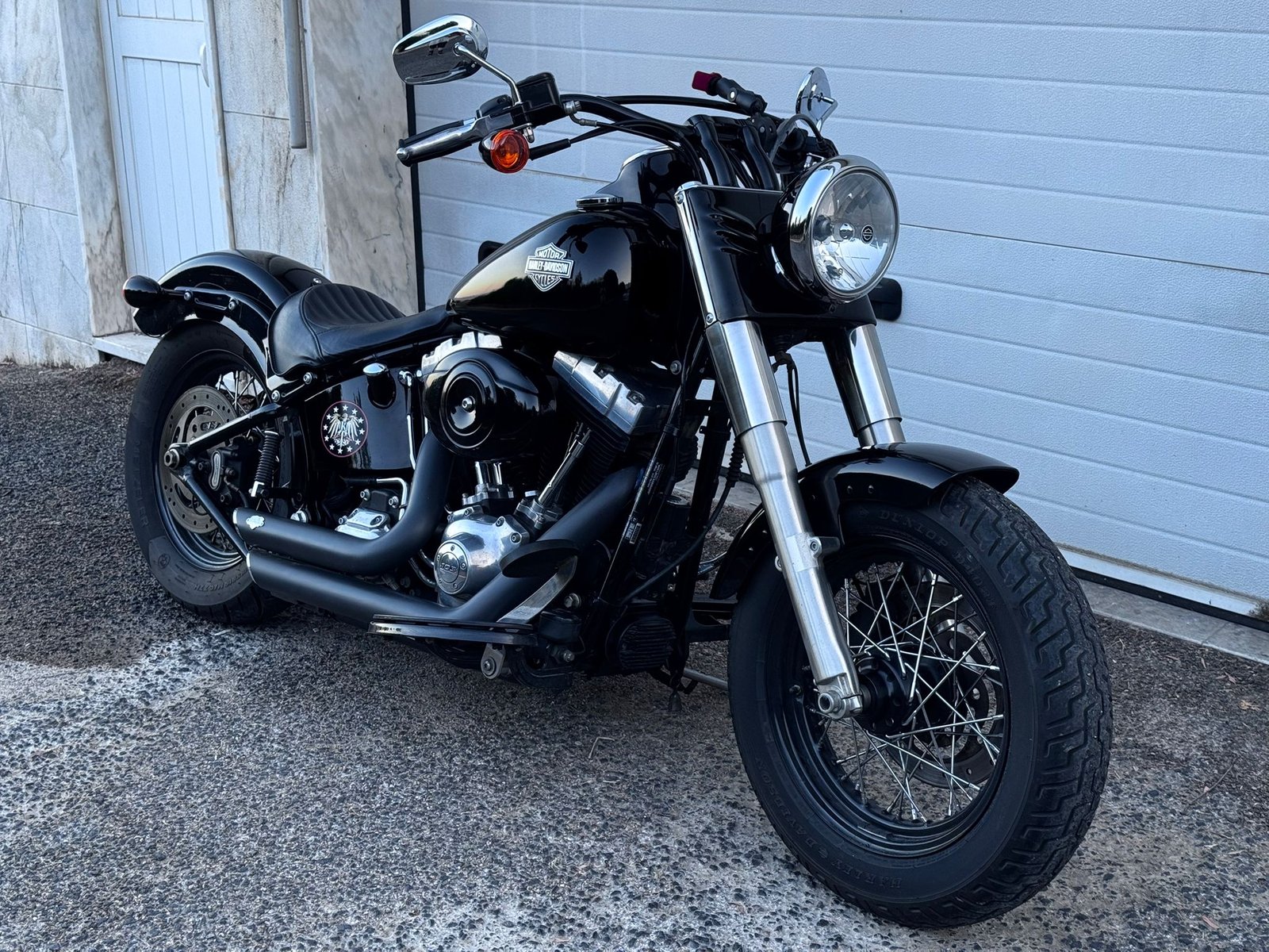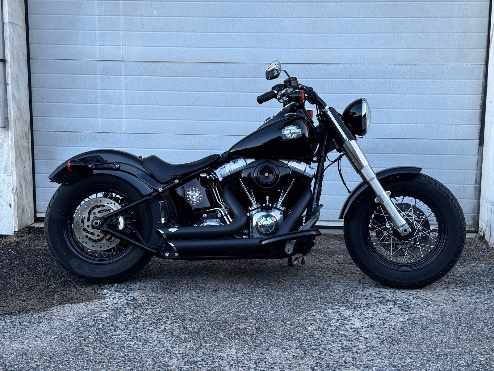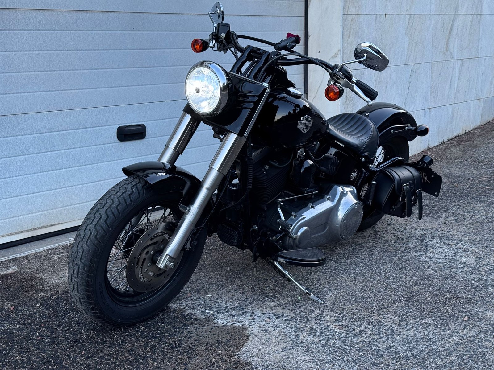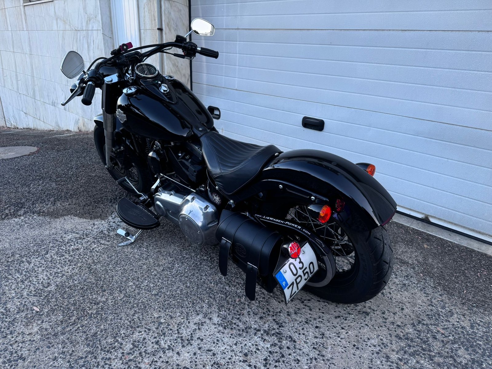 Softail Slim Special / Blackout (FLS) 103 5HD de 2014 34mil kms Revisão grande efectuada, detalhe em curso, Alarme HD, 2x FOB, ShortShots Vince &Hines, Lâmpada farol Led, Mala lateral Nova, Punhos OldSchool, Peseiras para Pendura, alavanca Velocidades de Calcanhar, Suporte Matrícula Lateral, Pneu Novo atrás. Importada de Inglaterra em 2019 Assistida na MOTOBEL Vin 5HD1JRVCXEB053090 Oferta de 1 Manutenção programada na Harley Lisboa por Kms ou Ano + Banco para pendura.